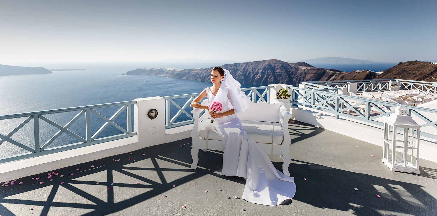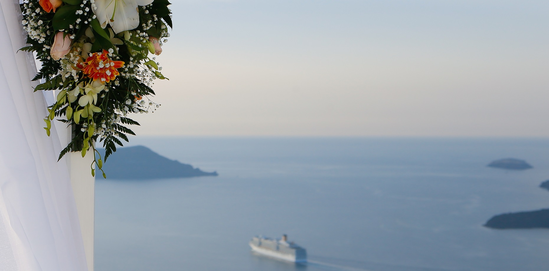 Our perfect location, the breathtaking view and the unique sunset of Santorini set up the most romantic setting for any wedding or renewal vow ceremonies.